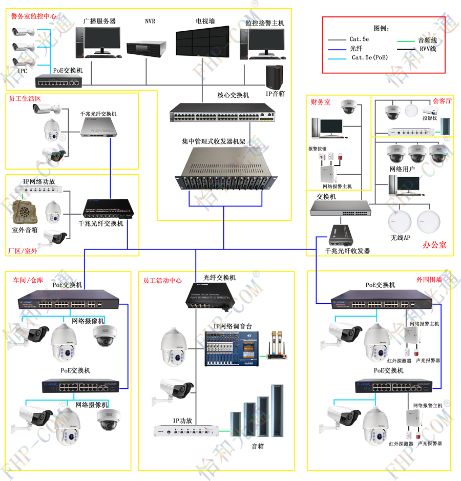 5、全部采用高清网络摄像机,可远程监控,布线采用光纤、双绞线、RVV线及视频线相结合,监控区域采取24小时全天候监控。